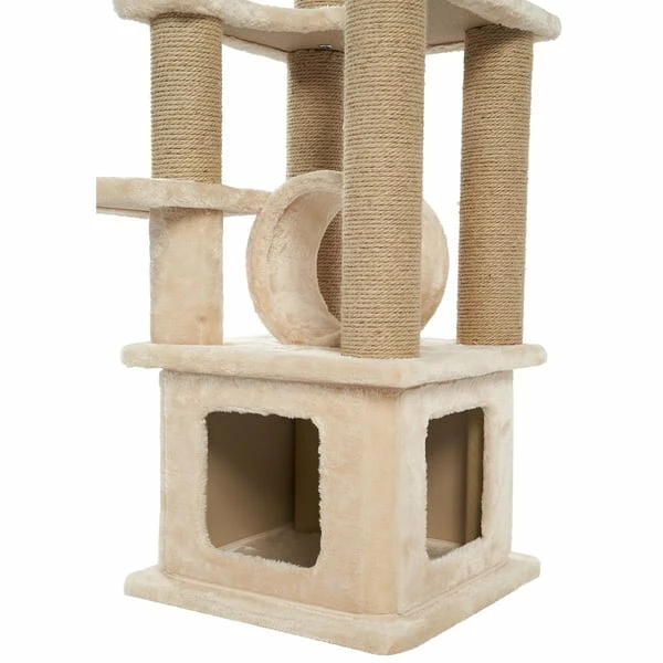 Der ZooRoyal Kratzbaum Sofia ist ein schöner und stabiler Kratzbaum in der wunderschönem Farbe Creme mit 4 Liegeflächen, einer kuscheligen Höhle, einem Tunnel und viel Kratzfläche aus natürlichem Sisal. Hier bleiben keine Wünsche deines Stubentigers offen: Nach dem Krallen wetzen, Klettern und Spielen kann sich deine Katze auf die Liegeflächen oder in der Höhle entspannt zurückziehen und ausruhen.