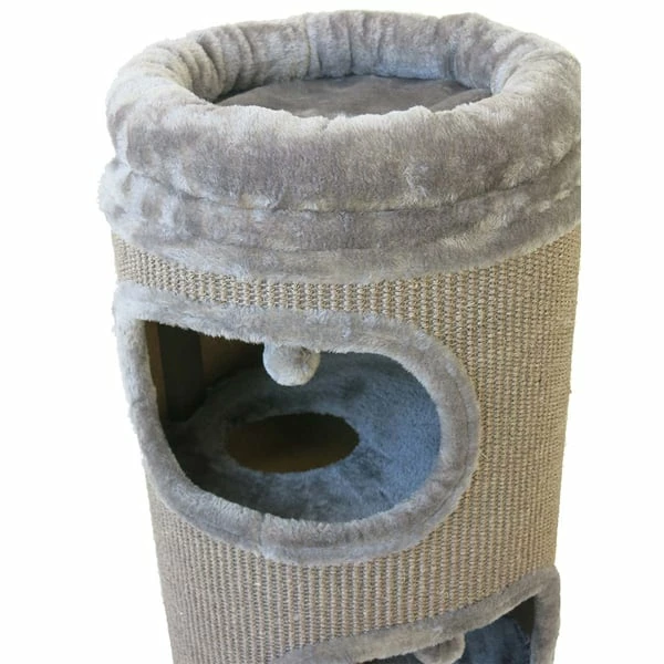 Die stabile und schöne Kratztonne Sami ist erhĂ€ltlich in den Farben beige/ creme und grau. Das abnehmbare gepolsterte Kuschelnest auf der obersten Etage bietet einen idealen Liegeplatz zum beobachten und dösen. Sie hat 3 Höhlen, in die sich dein Stubentiger zurĂŒckziehen kann. Alle Höhlen sind durch innere DurchgĂ€nge miteinander verbunden. FĂŒr ordentlich KratzspaĂ sorgt die groĂe KratzflĂ€che aus natĂŒrlichem Sisal. Hier kann deine Katze ihrem natĂŒrlichen KratzbedĂŒrfnis nachgehen.