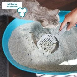 2. Feste Ausscheidungen und gebildete Klumpen täglich mit einer Streuschaufel entfernen, gegebenenfalls Streu nachfüllen und durch Rütteln wieder gleichmäßig verteilen.